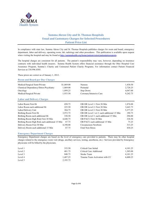 Summa Akron City And St Thomas Hospitals Usual And Customary